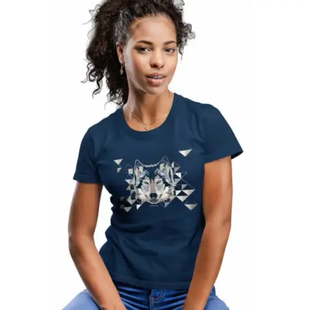 • Geometric Wolf Short Sleeve Women’s Navy Blue T-shirt