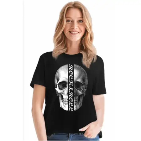 • Half Skull Short Sleeve Women’s Black T-shirt