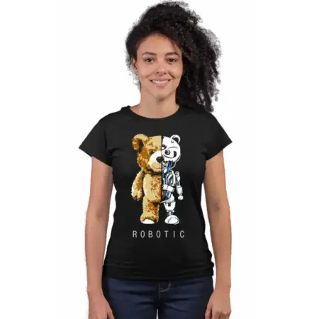 • Robot Bear Women’s Short Sleeve Black T-shirt