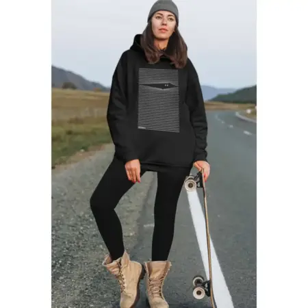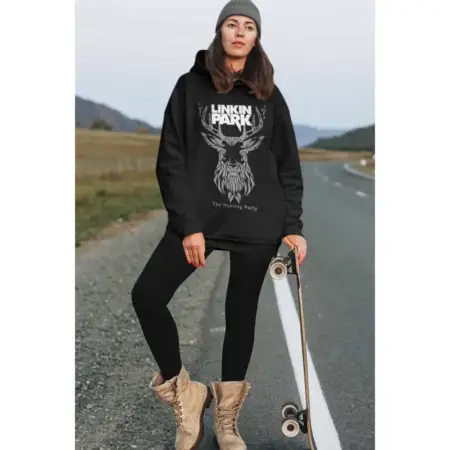 • Geometric Deer Hoodie Thick Oversize Women’s Black Sweatshirt