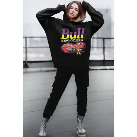 • Red Race Car Hoodie Women’s Thick Oversize Black Sweatshirt