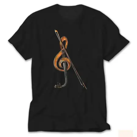 • Clef Sign and Violin Black T-Shirt