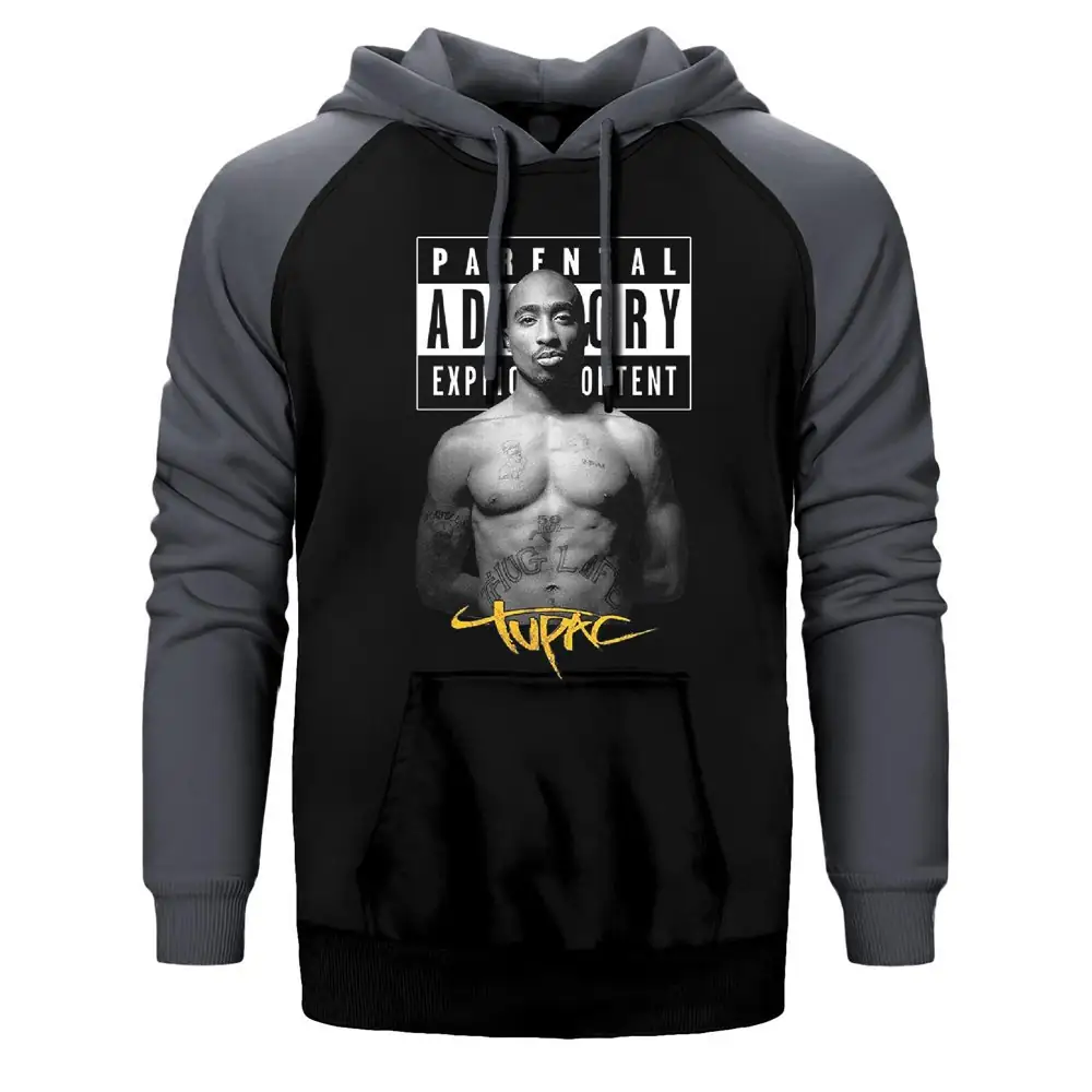 2pac Parental Advisory Raglan Sleeve Grey Sweatshirt