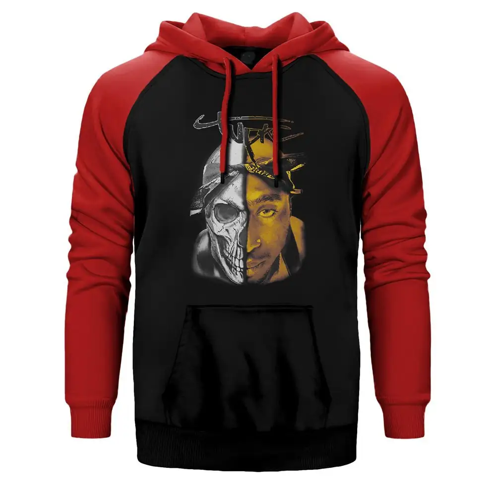 2pac Skull Raglan Sleeve Red Sweatshirt