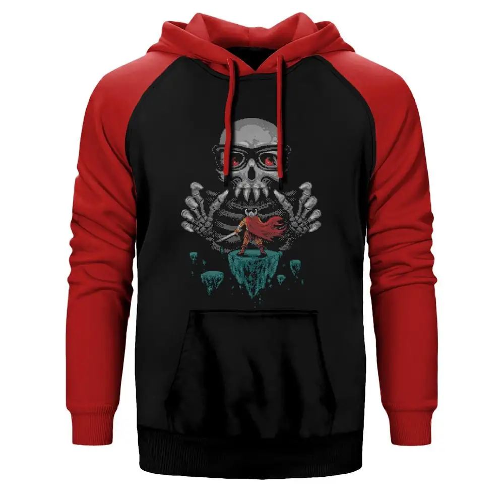 8bit Skull Raglan Sleeve Red Sweatshirt