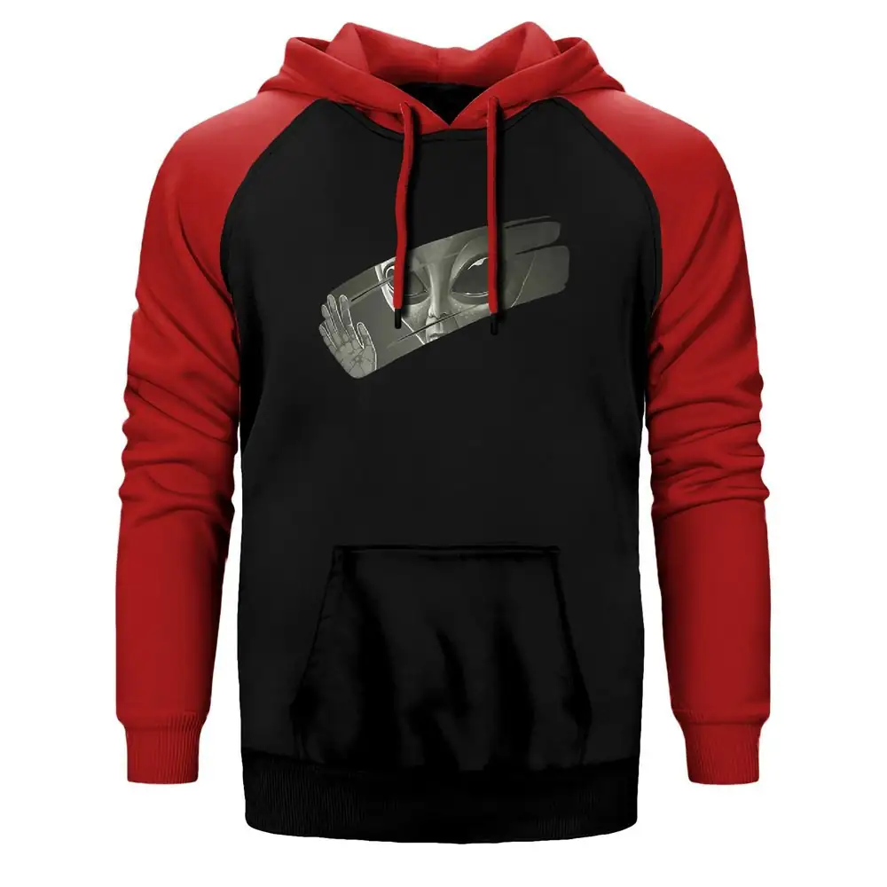 Alien Behind Glass Raglan Sleeve Red Sweatshirt