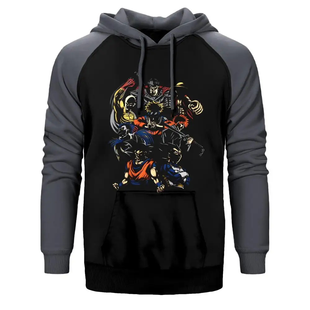 Anime Characters Raglan Sleeve Grey Sweatshirt