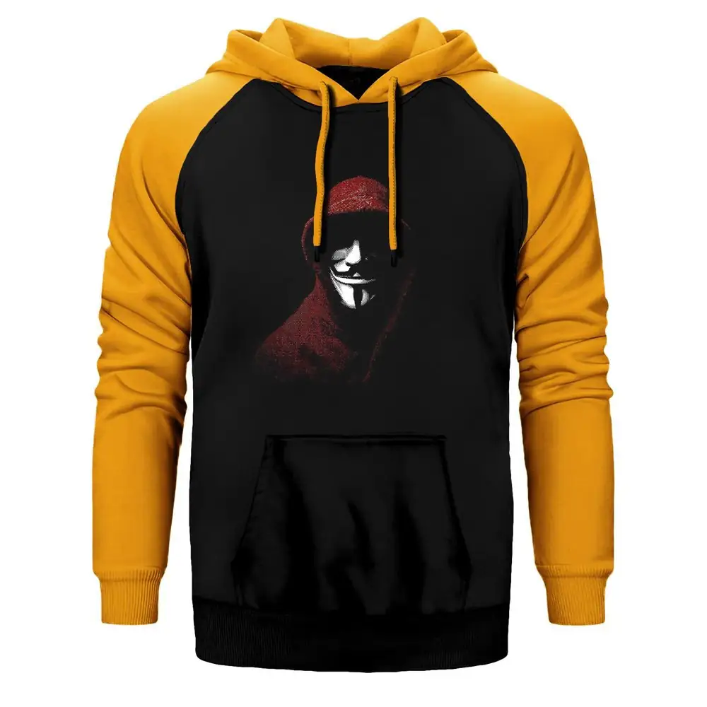 Anonymous Half Mask Raglan Sleeve Yellow Sweatshirt