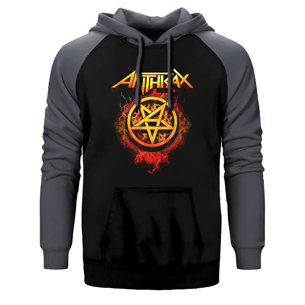 Anthrax Fire with Pentagram Raglan Sleeve Grey Sweatshirt