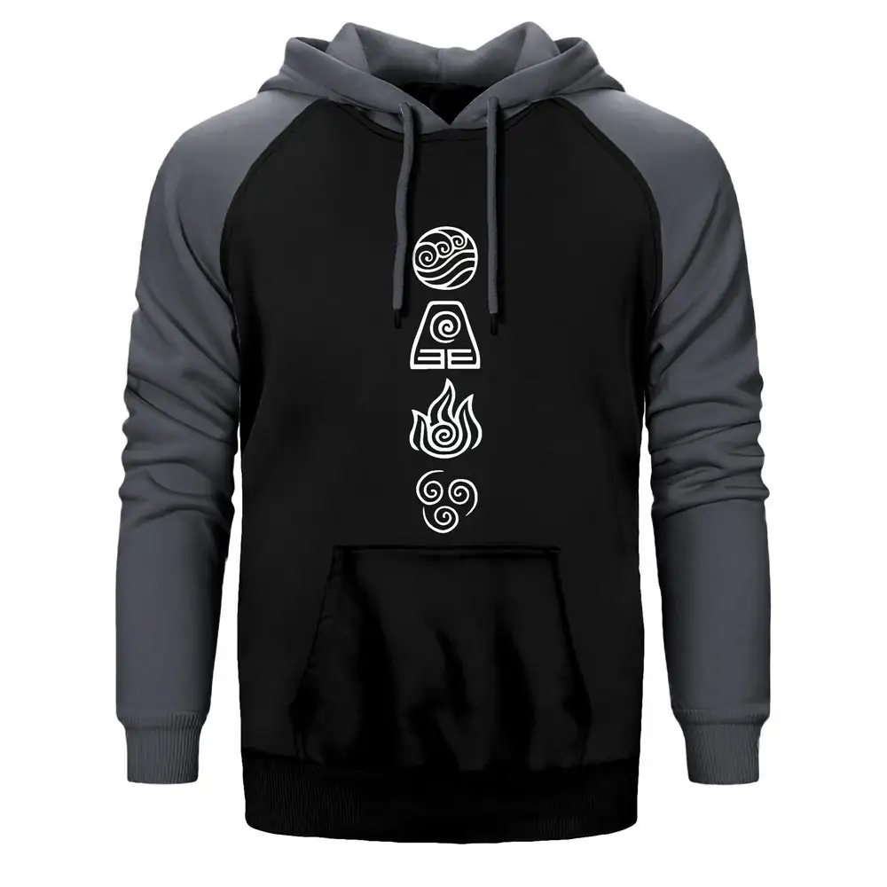 Avatar Four Elements Double Color Raglan Sleeve Grey Hoodie Sweatshirt
