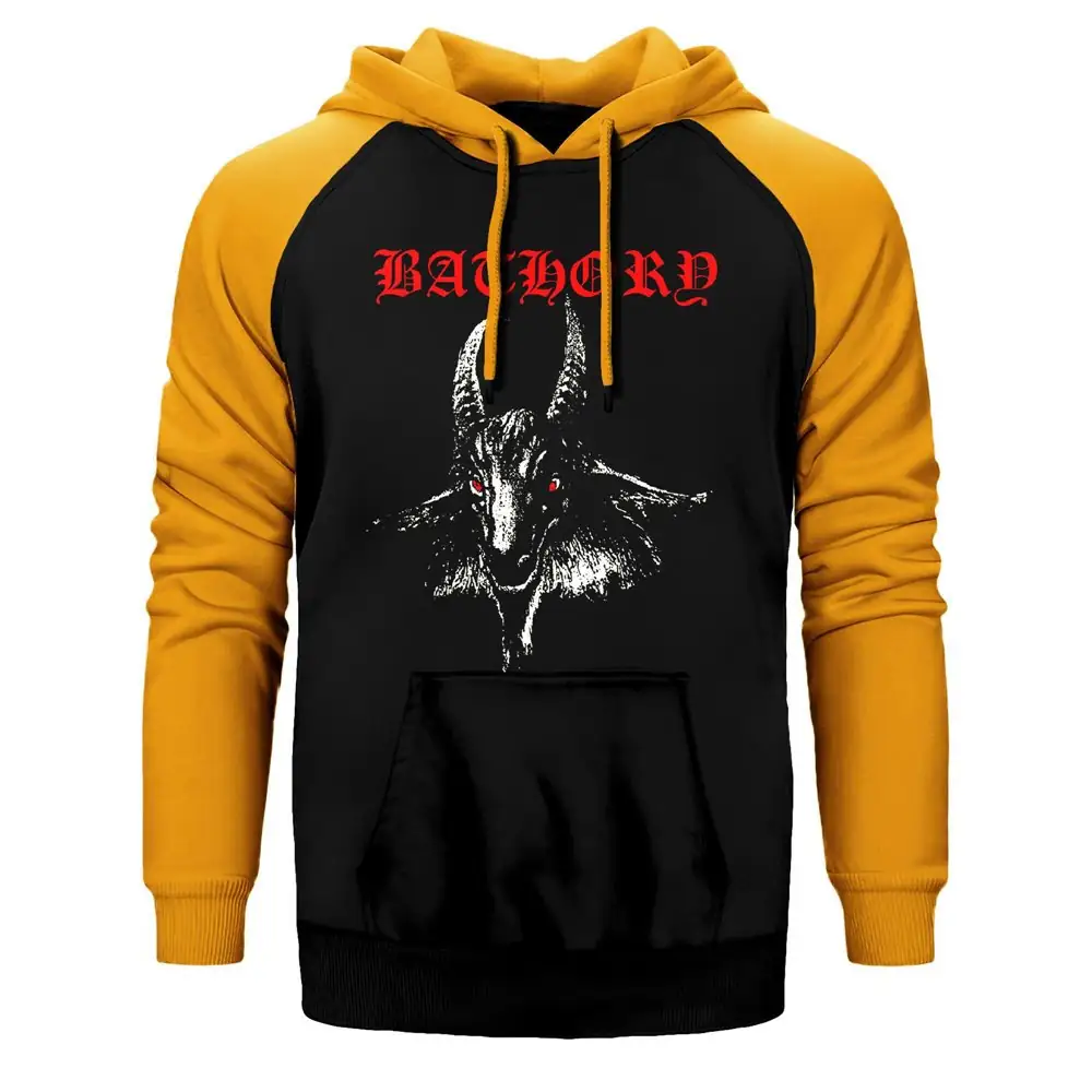 Bathory – Goat Classic Hoodie, Double Color Raglan Sleeve Yellow Sweatshirt