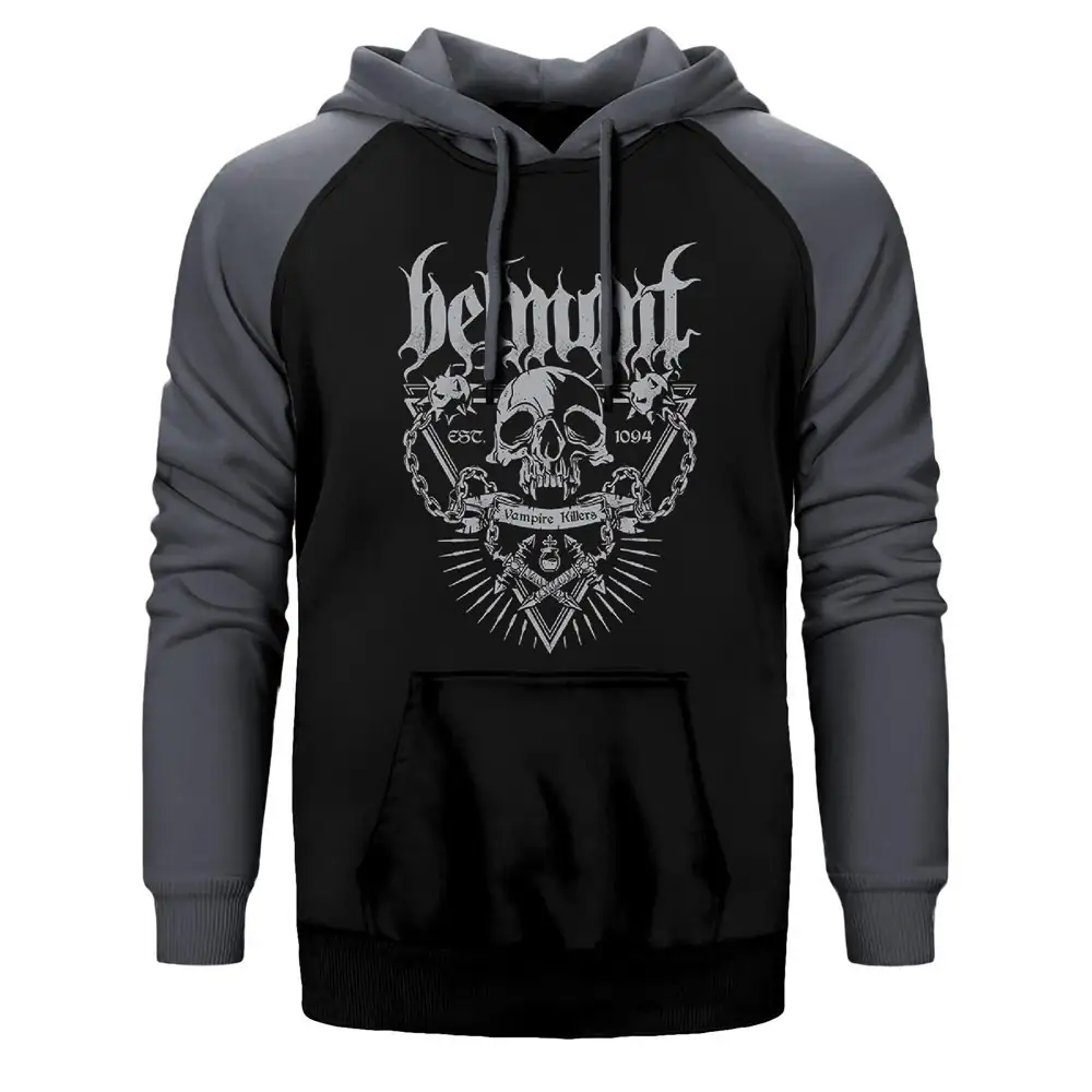 Belmont Vampire Killer Hoodie, Double Color Raglan Sleeve Grey Sweatshirt
