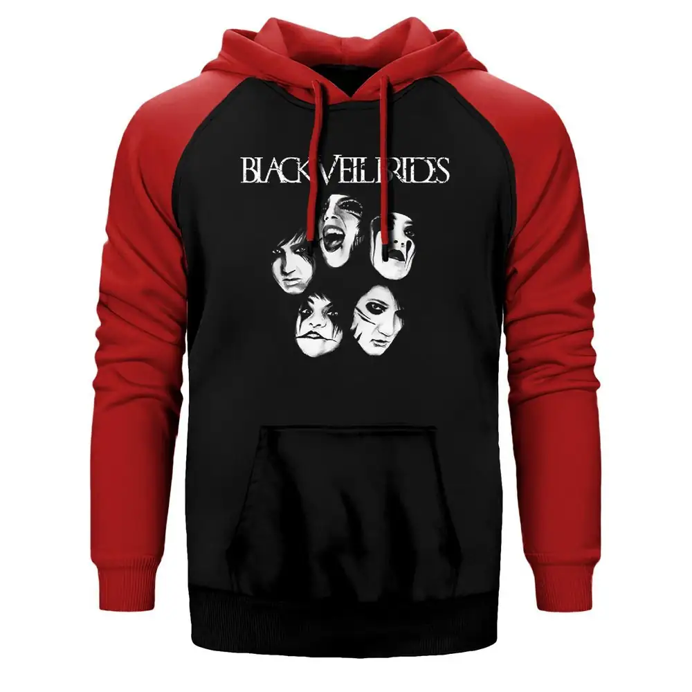 Black Veil Brides Group Hoodie, Double Color Raglan Sleeve Red Sweatshirt