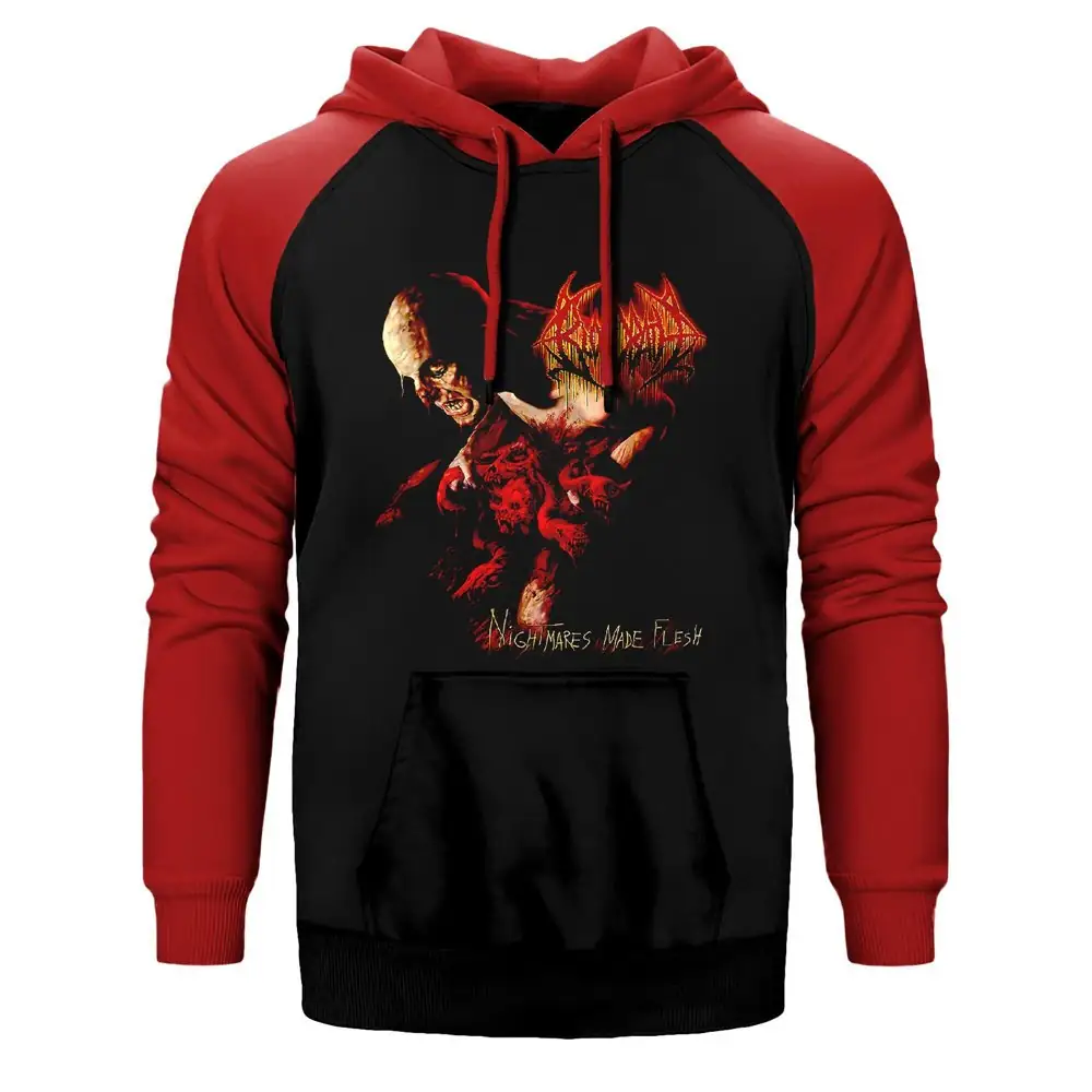 Bloodbath Nightmares Made Flesh Hoodie, Double Color Raglan Sleeve Red Sweatshirt
