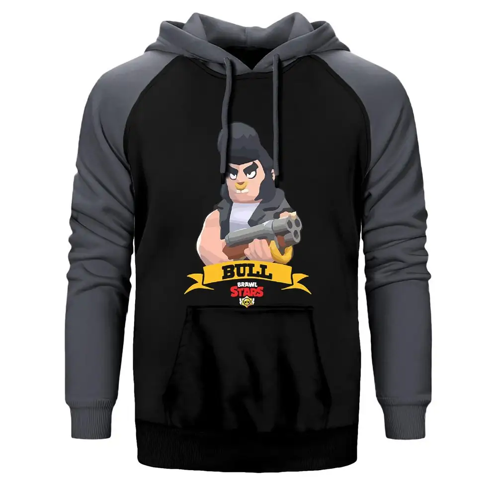 Brawl Stars Bull Hoodie, Double Color Raglan Sleeve Grey Sweatshirt