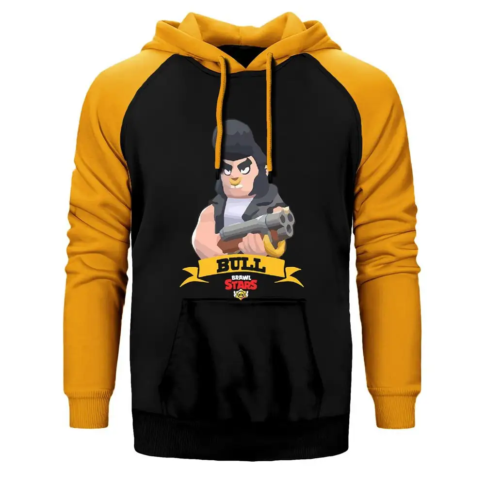 Brawl Stars Bull Hoodie, Double Color Raglan Sleeve Yellow Sweatshirt