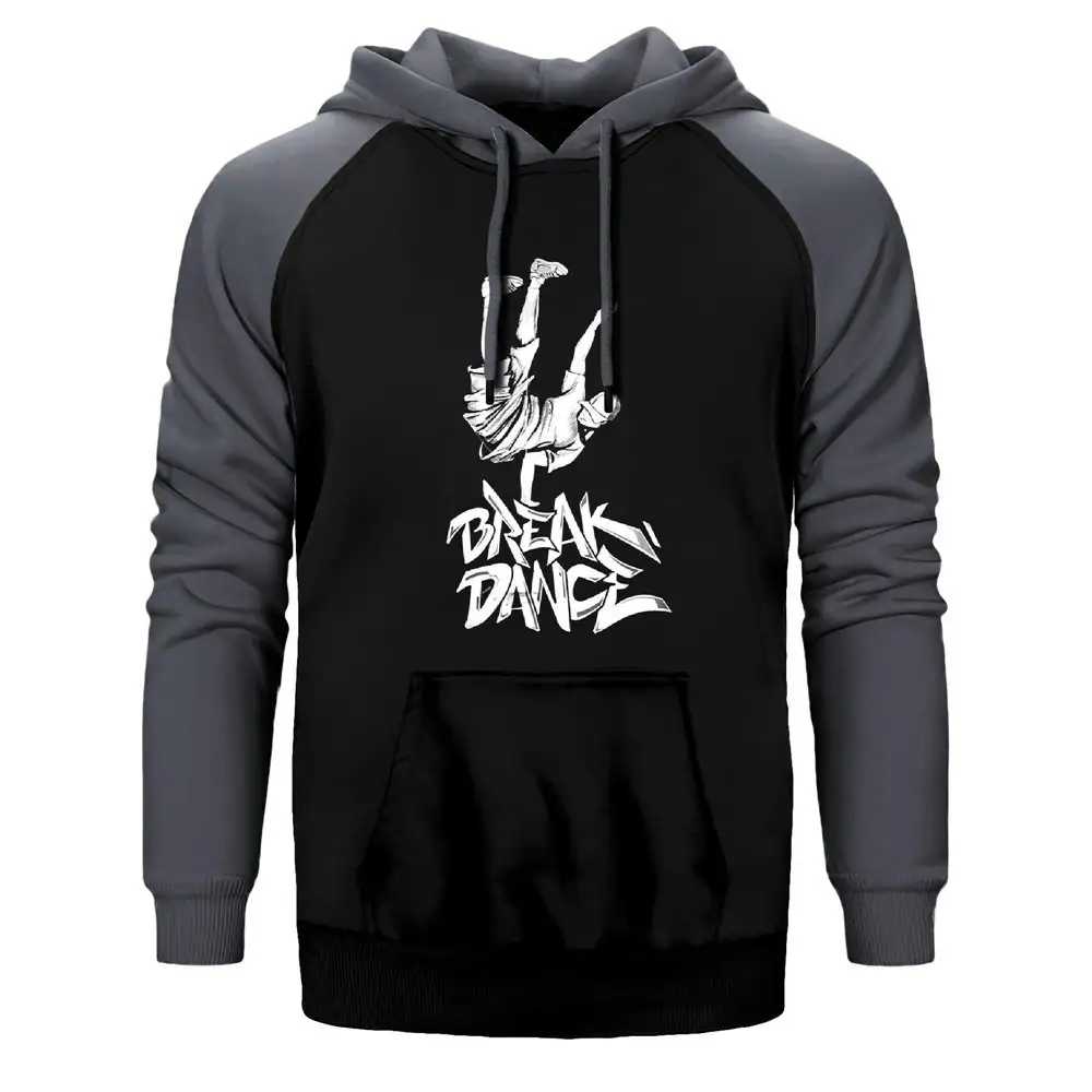Break Dance Hoodie, Double Color Raglan Sleeve Grey Sweatshirt