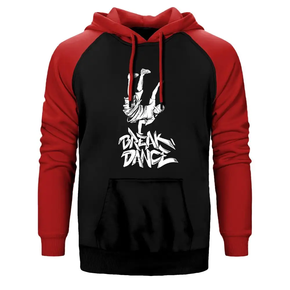 Break Dance Hoodie, Double Color Raglan Sleeve Red Sweatshirt