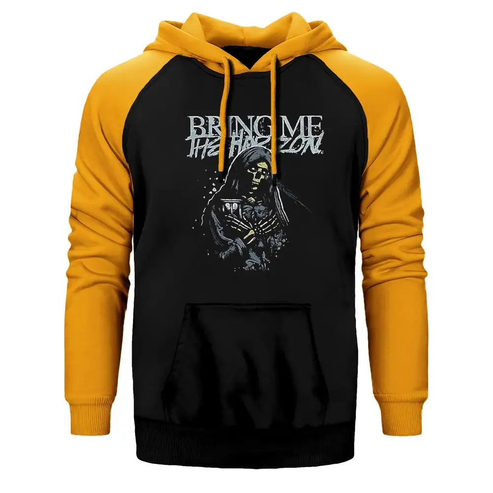 Bring Me The Horizon Death Hoodie, Double Color Raglan Sleeve Yellow Sweatshirt