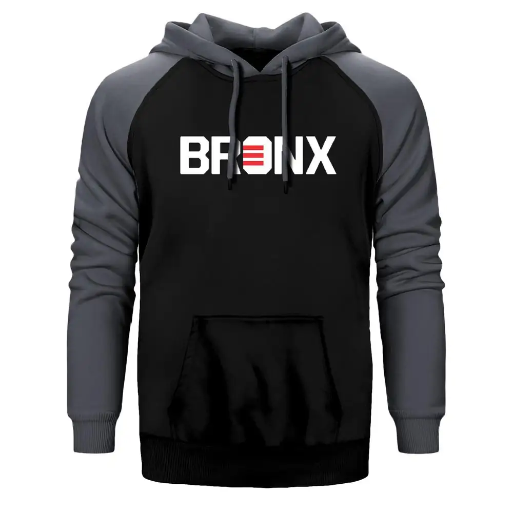 Bronx Hoodie, Double Color Raglan Sleeve Grey Sweatshirt