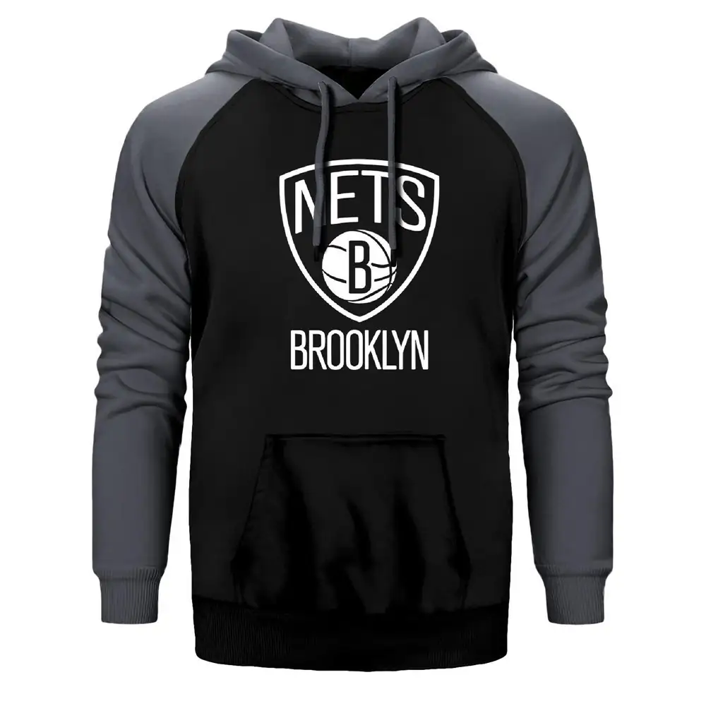 Brooklyn Nets Hoodie, Double Color Raglan Sleeve Grey Sweatshirt