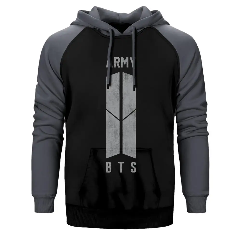 BTS ARMY Logo Hoodie, Double Color Raglan Sleeve Grey Sweatshirt