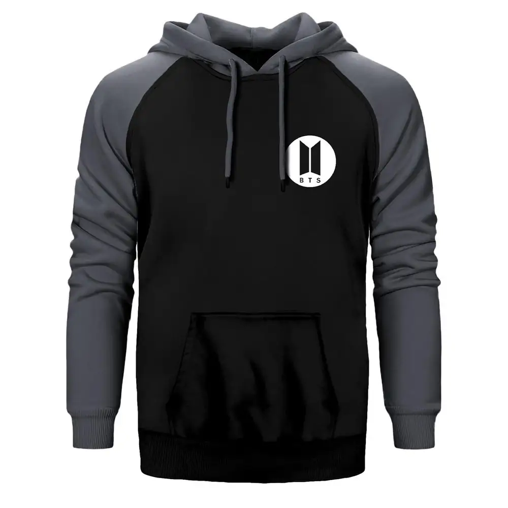 BTS Circle Logo Hoodie, Double Color Raglan Sleeve Grey Sweatshirt