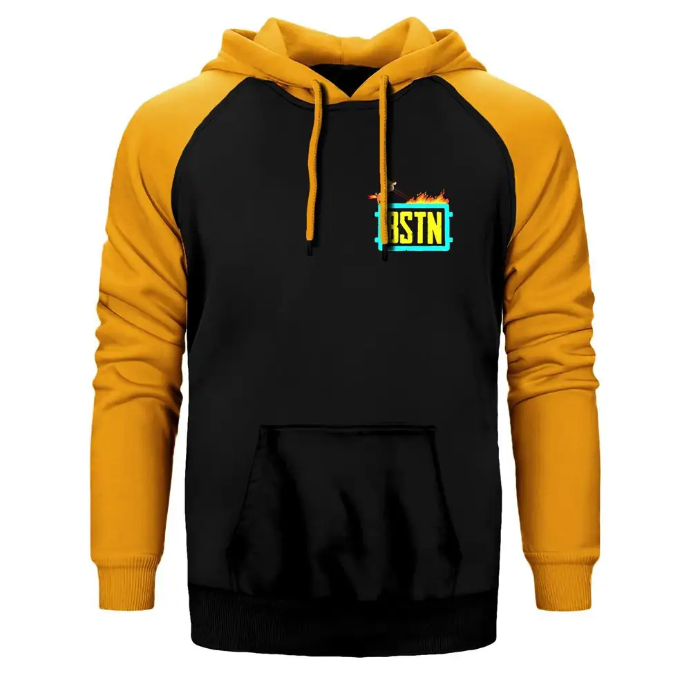 Bystanders Hoodie, Double Color Raglan Sleeve Yellow Sweatshirt
