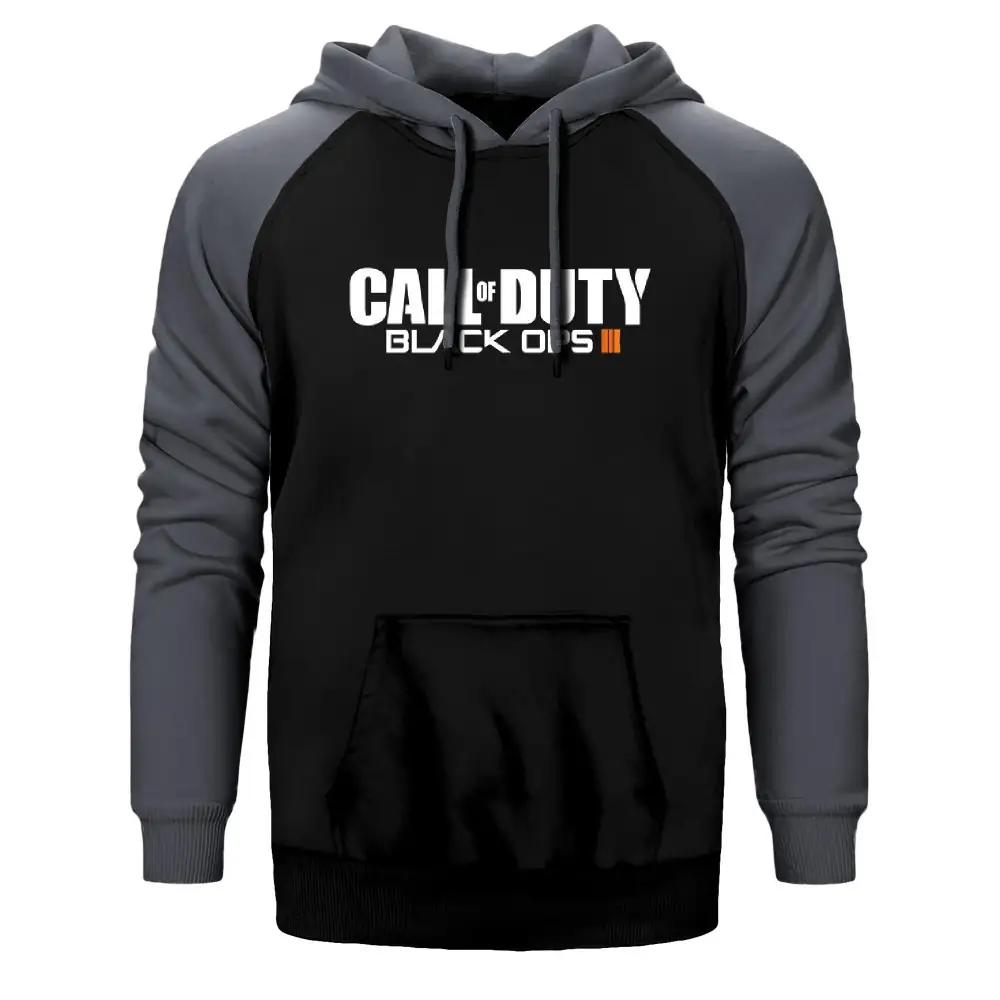 Call of Duty Black Ops III Hoodie, Double Color Raglan Sleeve Grey Sweatshirt