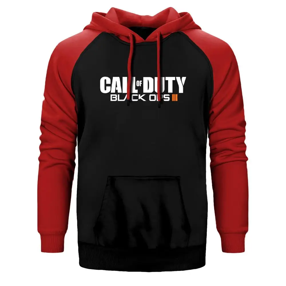 Call of Duty Black Ops III Hoodie, Double Color Raglan Sleeve Red Sweatshirt