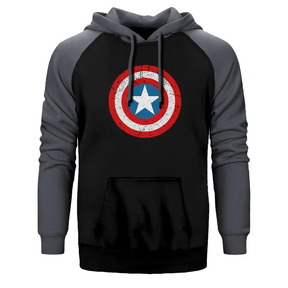 Captain America Hoodie, Double Color Raglan Sleeve Grey Sweatshirt