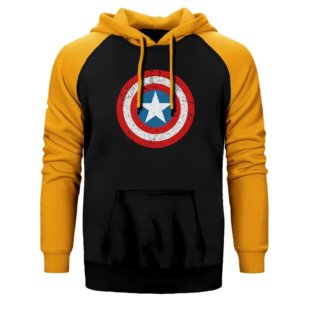 Captain America Hoodie, Double Color Raglan Sleeve Yellow Sweatshirt