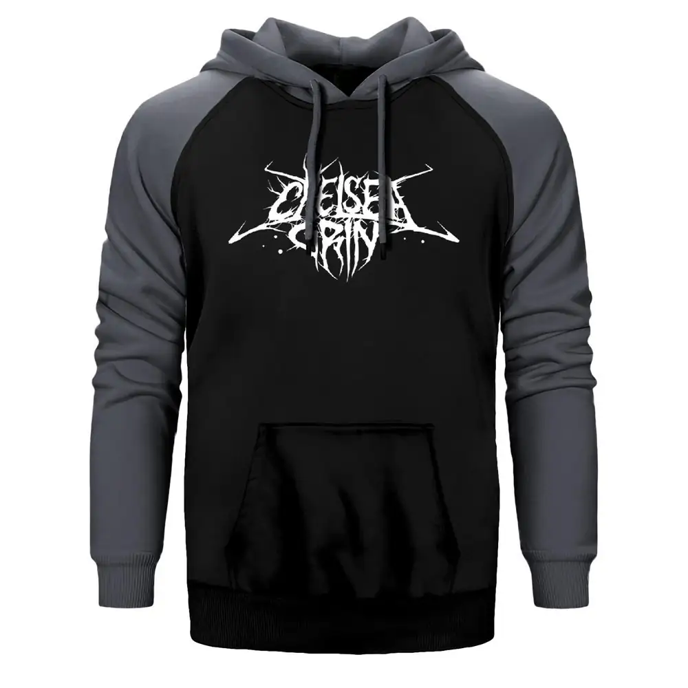 Chelsea Grin Logo Hoodie, Double Color Raglan Sleeve Grey Sweatshirt