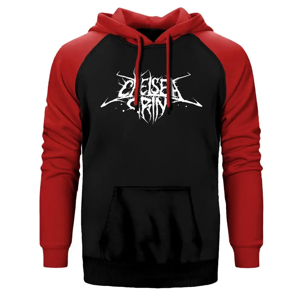 Chelsea Grin Logo Hoodie, Double Color Raglan Sleeve Red Sweatshirt