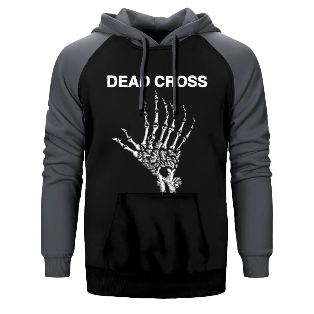 Dead Cross Hoodie, Double Color Raglan Sleeve Gray Sweatshirt