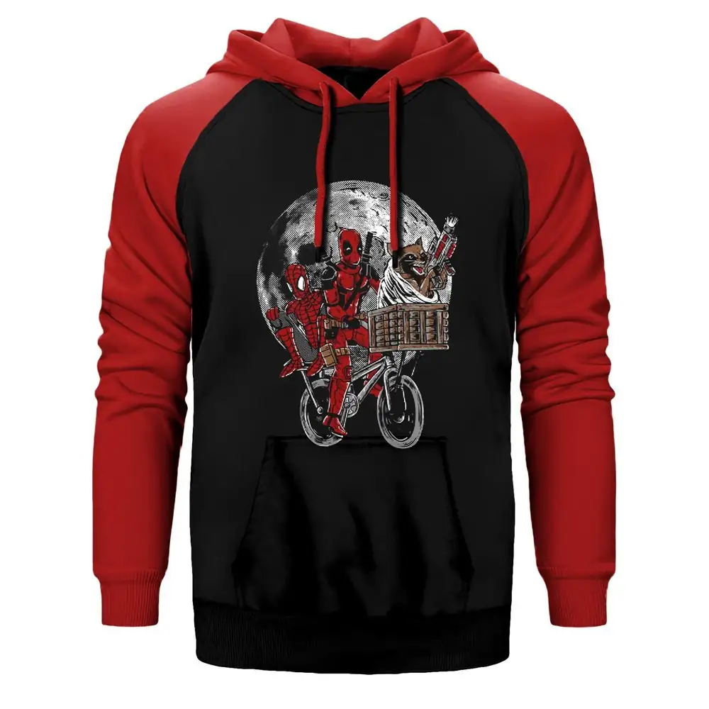 Deadpool and Moon Hoodie, Double Color Raglan Sleeve Red Sweatshirt