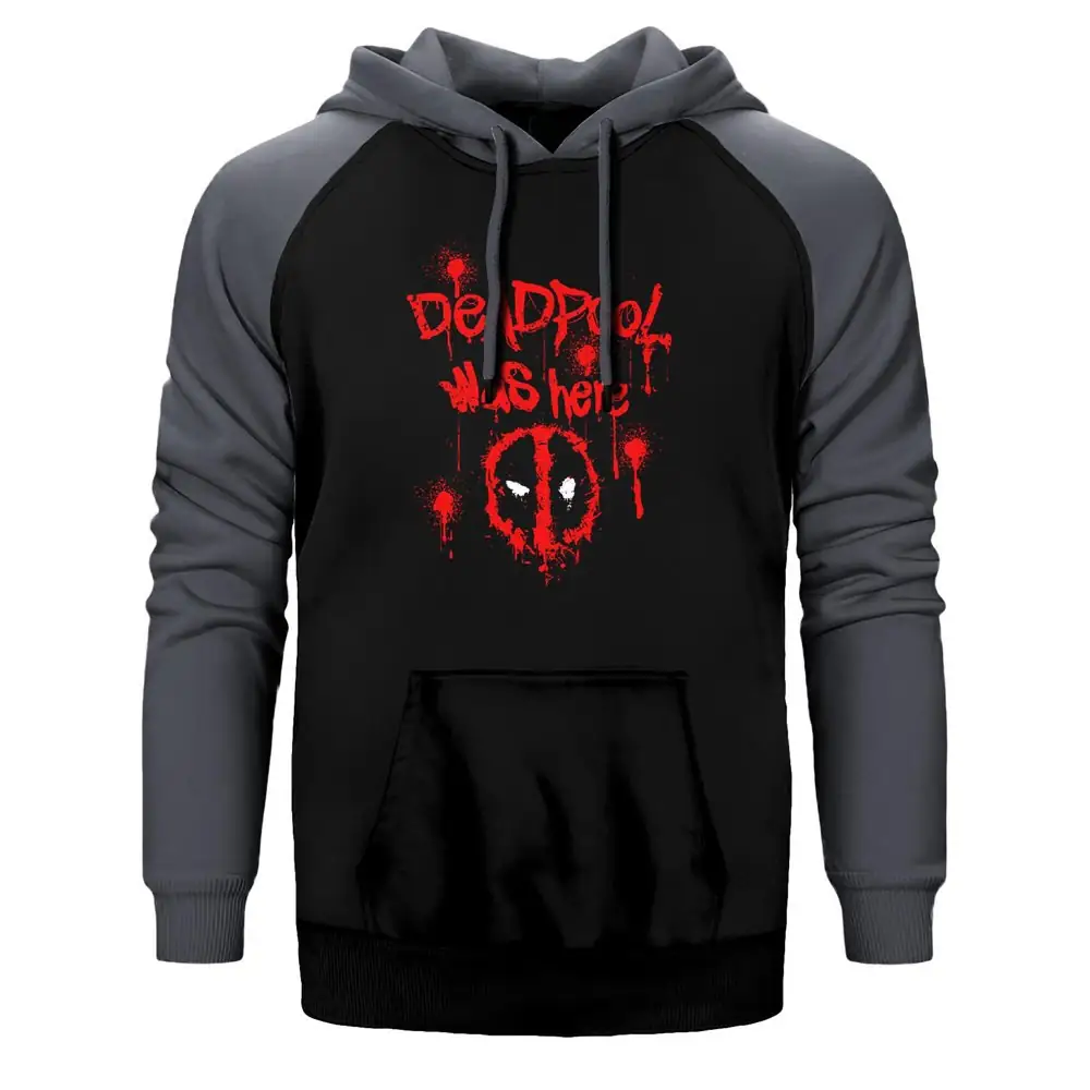 Deadpool Was Here Hoodie, Double Color Raglan Sleeve Gray Sweatshirt