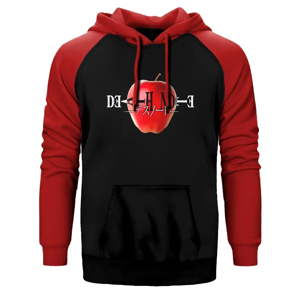 Death Note Apple Hoodie, Double Color Raglan Sleeve Red Sweatshirt