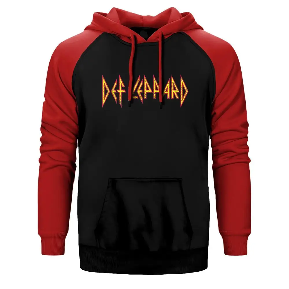 Def Leppard Hoodie, Double Color Raglan Sleeve Red Sweatshirt