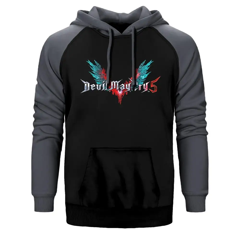Devil May Cry 5 Hoodie, Double Color Raglan Sleeve Gray Sweatshirt