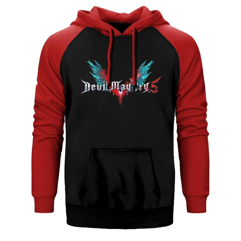 Devil May Cry 5 Hoodie, Double Color Raglan Sleeve Red Sweatshirt