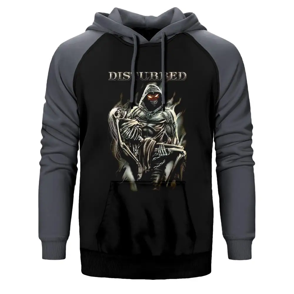 Disturbed Immortalized Hoodie, Double Color Raglan Sleeve Gray Sweatshirt