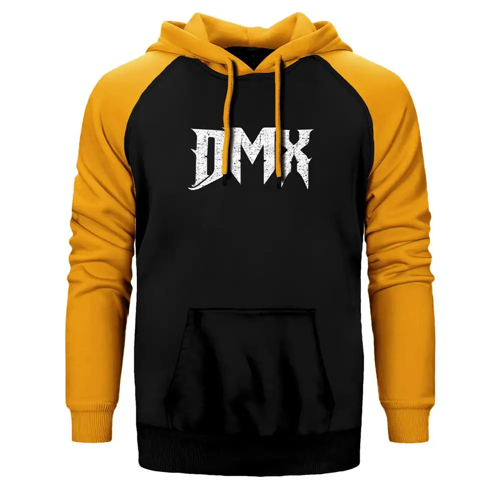 Dmx Logo Hoodie, Double Color Raglan Sleeve Yellow Sweatshirt