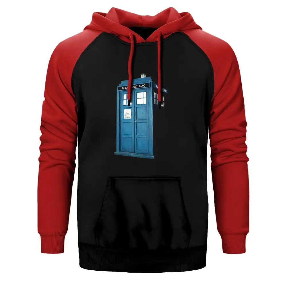 Doctor Who Tardis Hoodie, Double Color Raglan Sleeve Red Sweatshirt