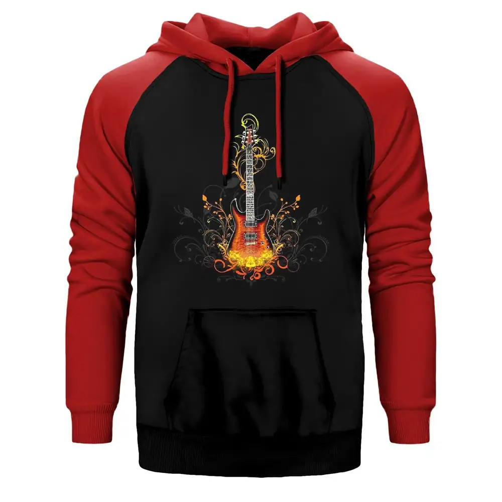 Flame Electric Guitar Raglan Sleeve Red Sweatshirt