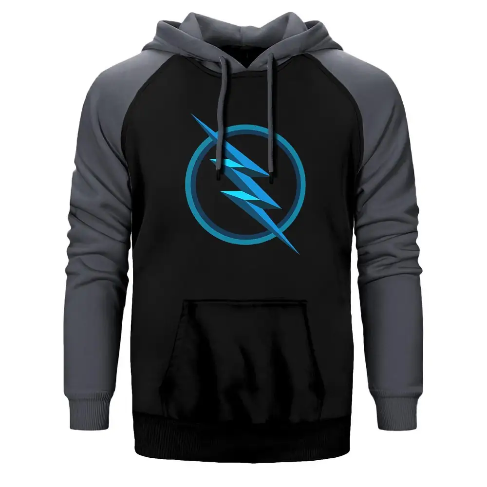 Flash Logo Hoodie, Double Color Raglan Sleeve Gray Sweatshirt