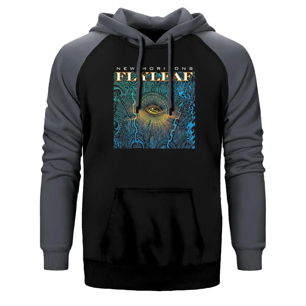 Flyleaf New Horizons Hoodie, Double Color Raglan Sleeve Gray Sweatshirt