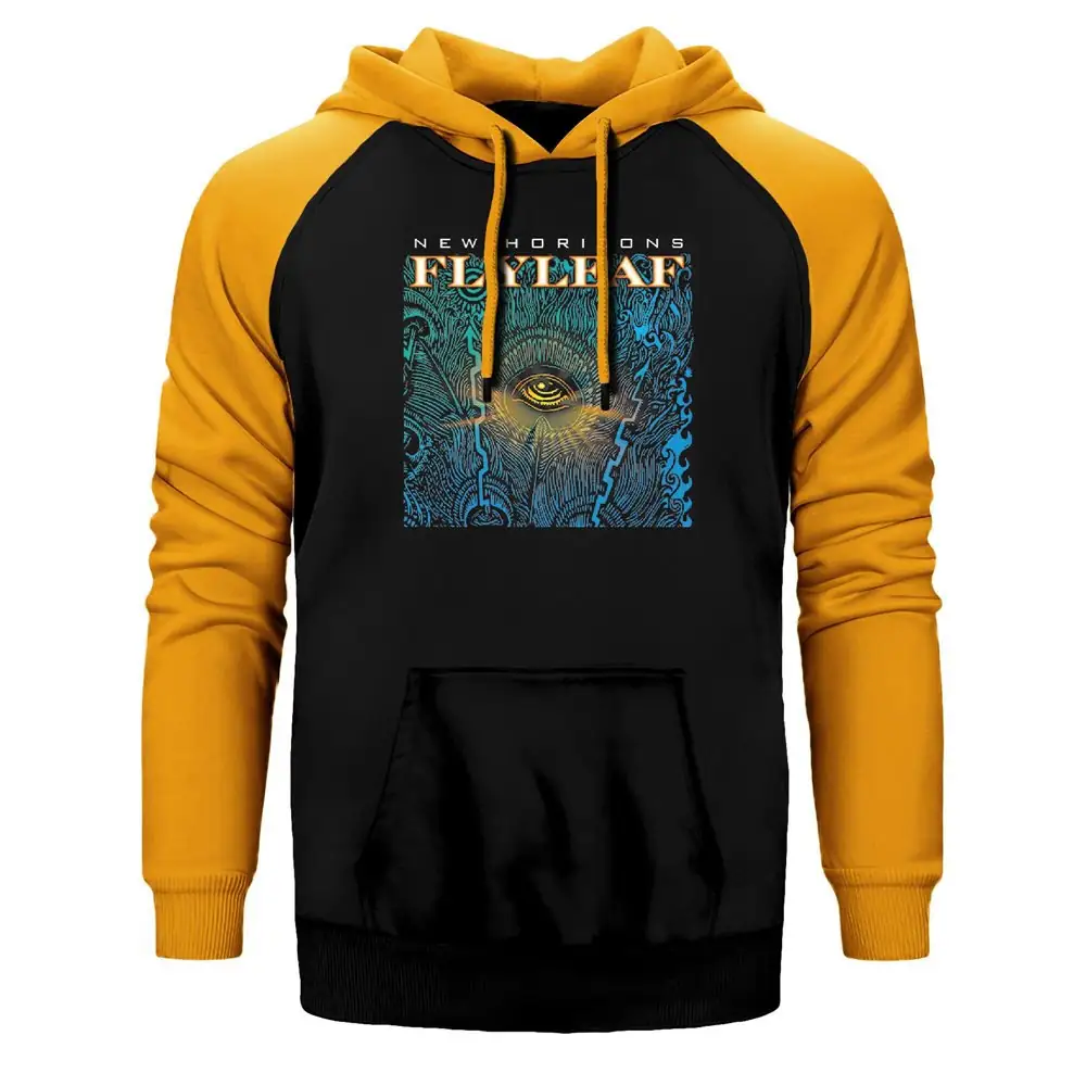 Flyleaf New Horizons Hoodie, Double Color Raglan Sleeve Yellow Sweatshirt