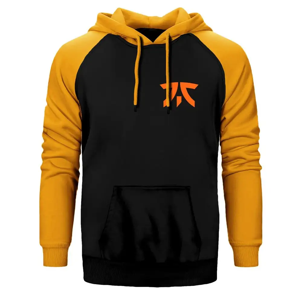 Fnatic 2021 Hoodie, Double Color Raglan Sleeve Yellow Sweatshirt
