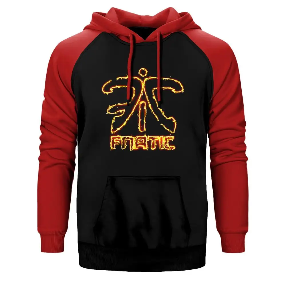 Fnatic Fired Up Hoodie, Double Color Raglan Sleeve Red Sweatshirt